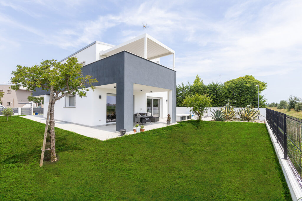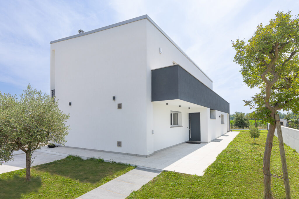 L’architettura concepita di questa casa ecologica, rispecchiando i gusti dei Committenti, si inserisce perfettamente in una pregevola zona residenziale del comune di Jesolo.