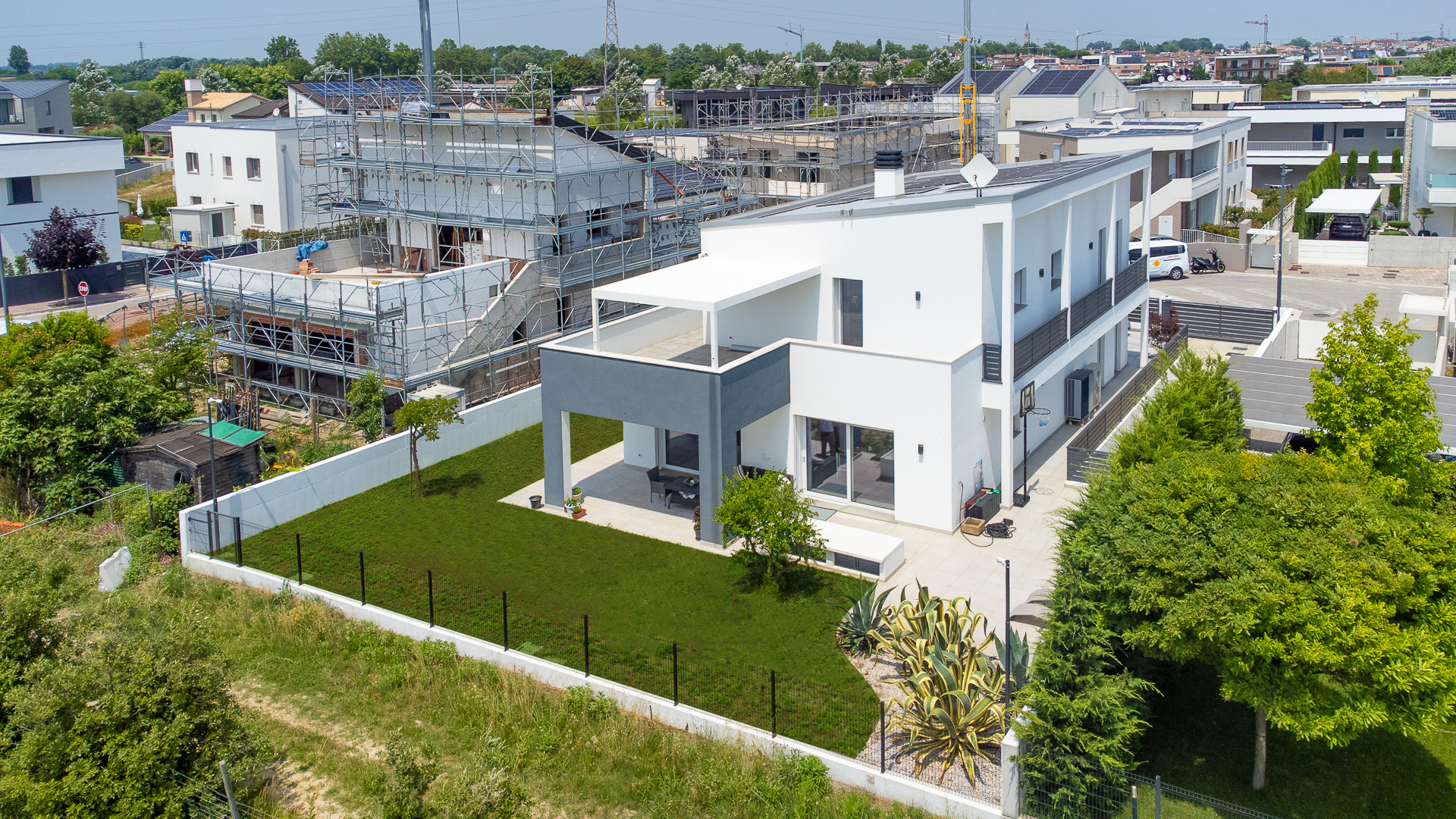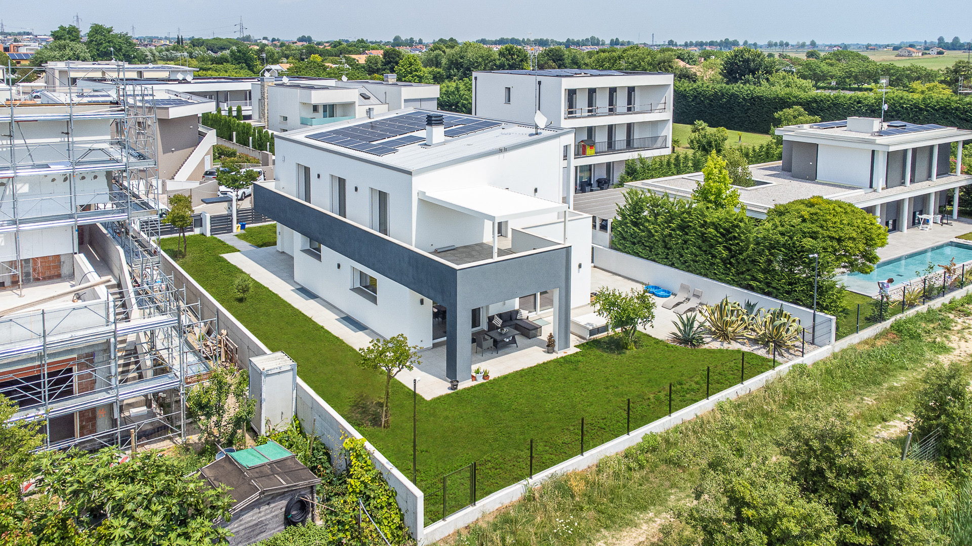 Questa peculiare villa ecologica passiva si trova in una pregevole zona residenziale del comune di Jesolo (Venezia), a circa un paio di chilometri dal Lido di Jesolo.