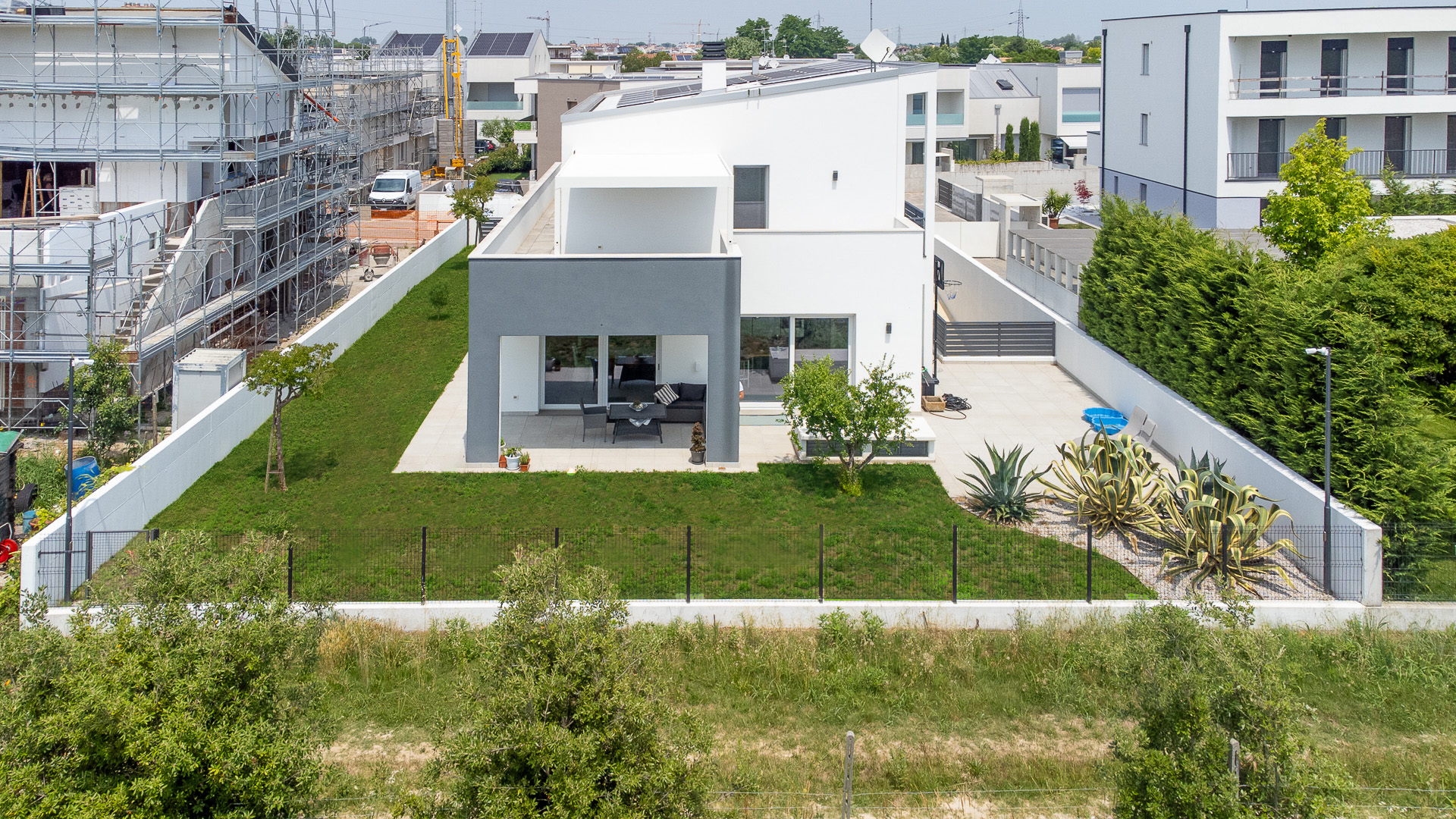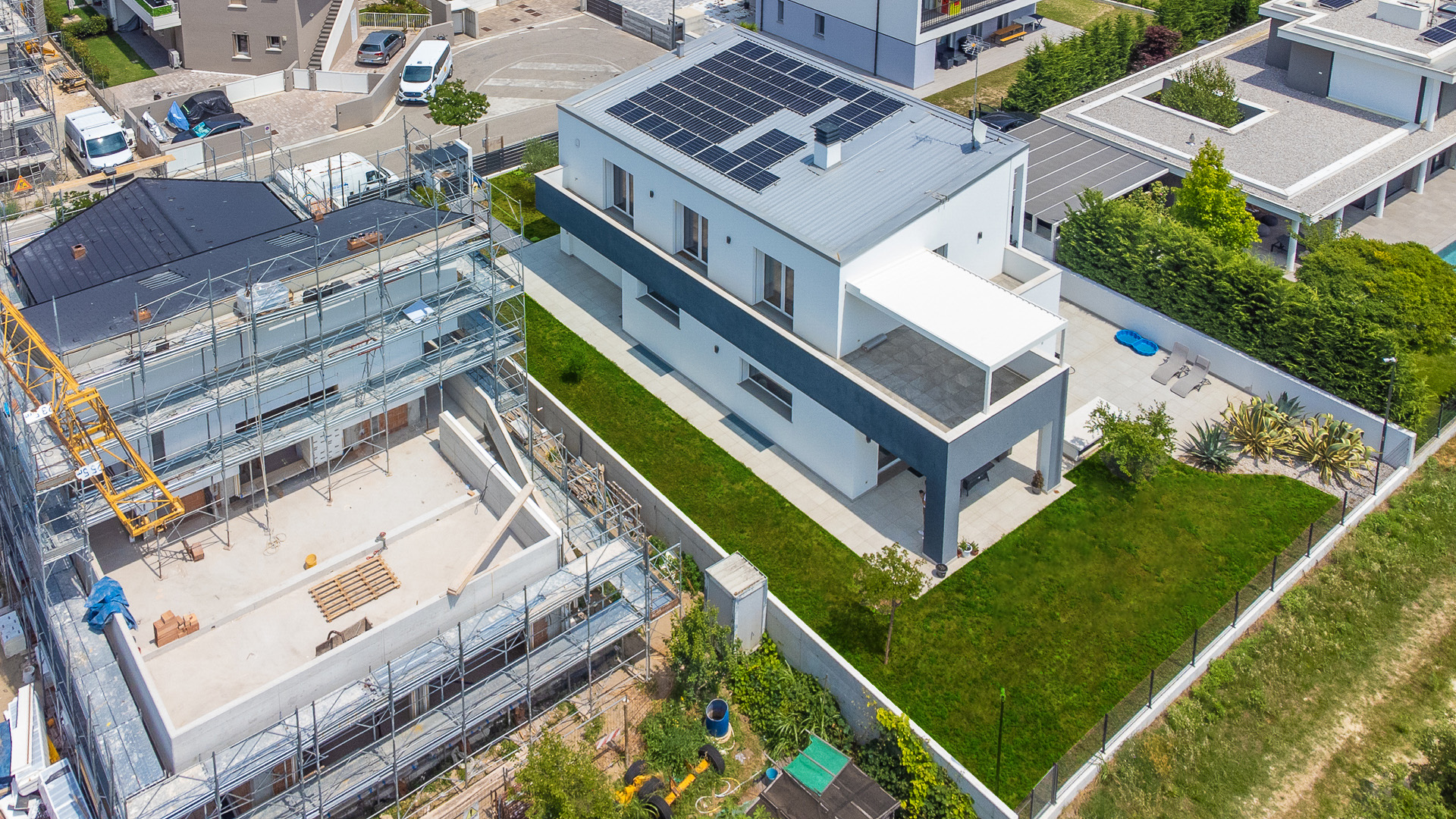 La composizione architettonica di questa casa ecologica è caratterizzata dalla presenza di linee contemporanee. La villa si sviluppa su due piani fuori terra ed uno interrato. E’ presente un solarium, richiesto dai Committenti, per giornate di relax indimenticabili.