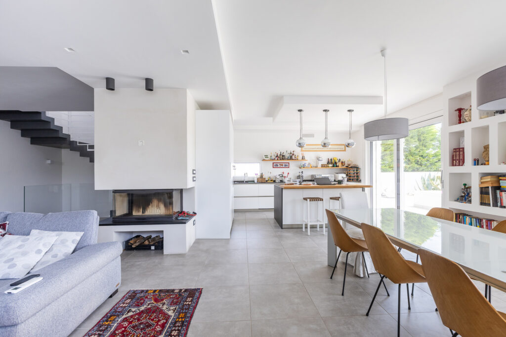 Dal punto di vista impiantistico, i Committenti hanno optato per un impianto moderno alimentato da pompa di calore e pannelli solari fotovoltaici e termostufa.